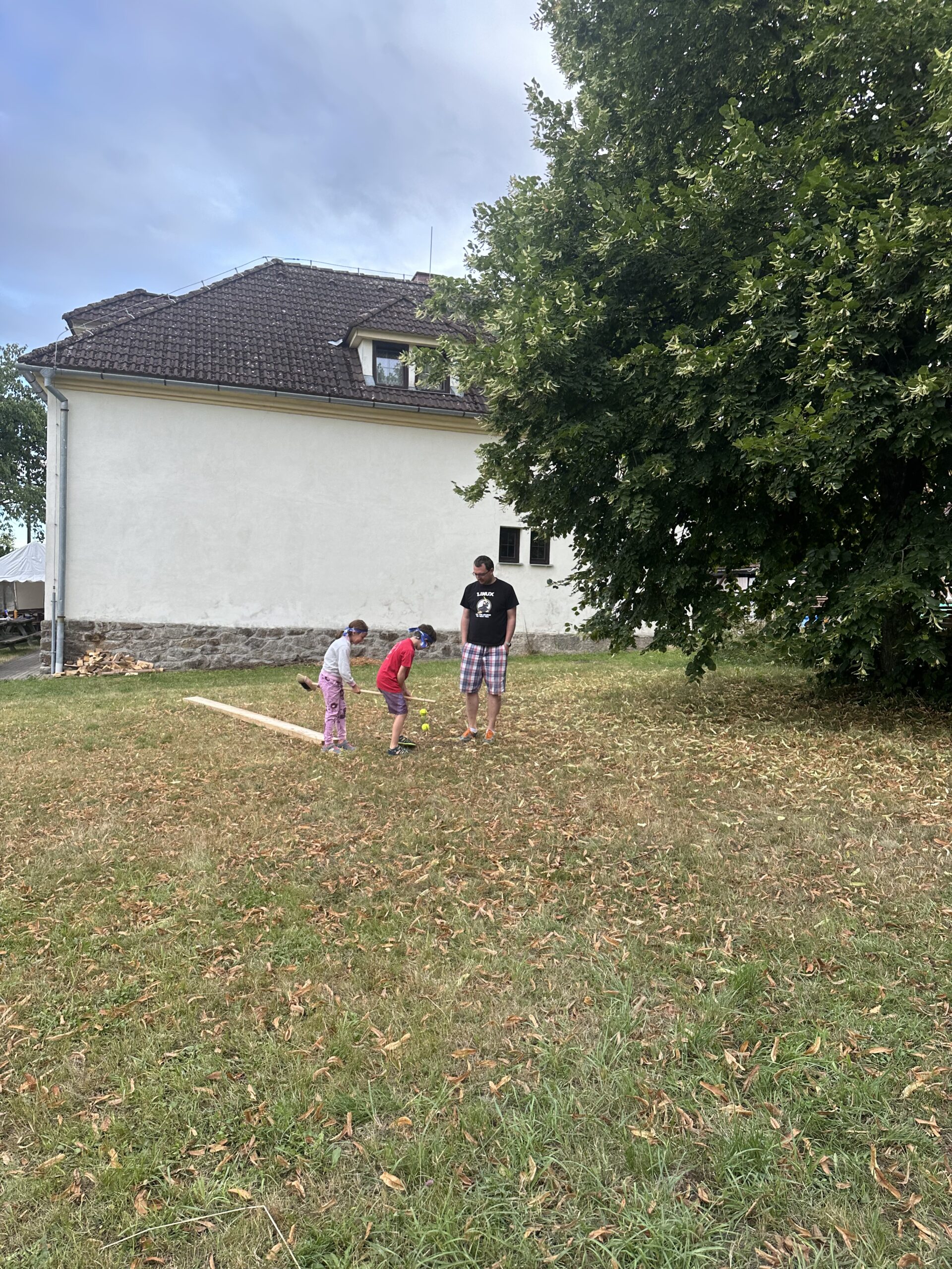 Po večeři nás ještě čekal nácvik letu na koštěti. Na zahradě jsme měli připravenou leteckou dráhu, kterou jsme museli jako tým zdolat. Na koštěti mohlo letět i několik osob najednou, ale nesměli sesednout od startu po cíl. Jelikož profesorka Graběnka Julová (čti „Žulová“ – francouzsky) stopovala čas, všichni si dali záležet, aby do cíle doletěli brzo. Naši malí kouzelníci ještě v kotlíku standartní velikosti 2 uvařili zotavovací lektvar z přinesených přísad a mohli se začít chystat do pelíšků.