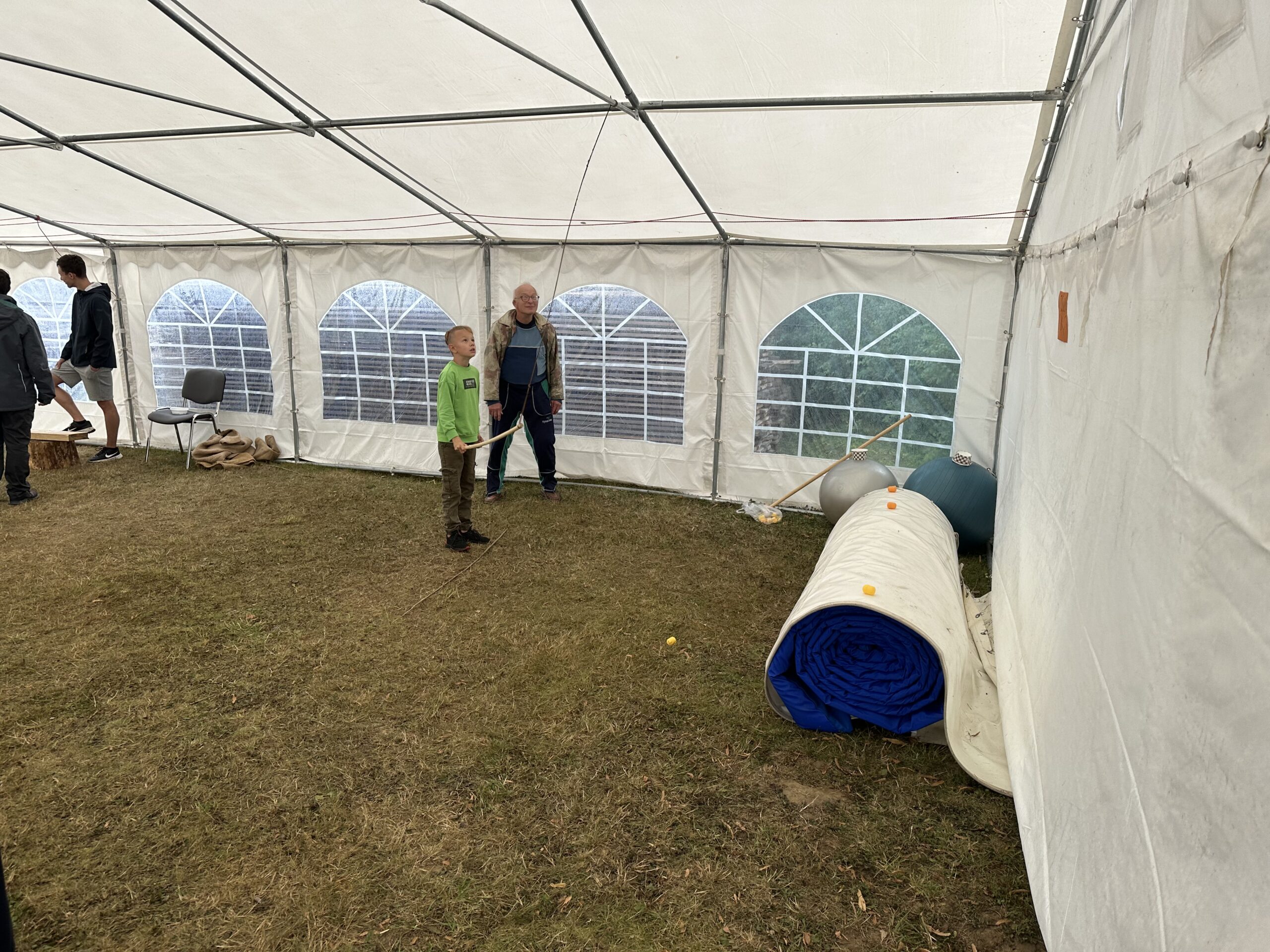 Pak už přišlo to, na co jsme se už dlouho těšili. Byl dnes totiž návštěvní den a po obědě nás přijeli navštívit rodiče, a tedy rozhodně nepřijeli s prázdnou! Přivezli nám výborné buchty a šneky a koláče a ovoce a fůru dalších laskominek. Byla to taková nádhera – úplný ohňostroj chutí! Mimo jiné měli pro nás vedoucí a pár jedinců z řad účastníků připravené soutěže – přijela pouť. K našemu překvapení dokonce i přestalo pršet, takže jsme mohli využít celou zahradu a nemuseli jsme se mačkat pouze ve stanu. Mohli jsme zde navštívit například chůzi po kladině, práskání bičem, střílení z praku, kimovku, šifry schované v uzlíkách nebo třeba hod holínkou a spoustu dalších. Za každou disciplínu jsme dostali odměnu – táborové korunky, za které jsme si mohli v našem vytvořeném obchůdku s kouzelným názvem „Medový ráj“, zakoupit různé zajímavé předměty. Třeba kachničku ze slámy, klíčenky, omalovánky, DVD o zemědělství, bonbonky nebo sušenky. Novinkou na naší pouti byl fotokoutek s různými rekvizitami a vtipně nadepsanými bublinami. Do soutěží se již tradičně nezapojily pouze děti, ale s velkou chutí se zapojili i rodiče a sourozenci, z čehož máme velikou radost. Když jsme se všichni dostatečně poveselili, přišlo na řadu loučení.