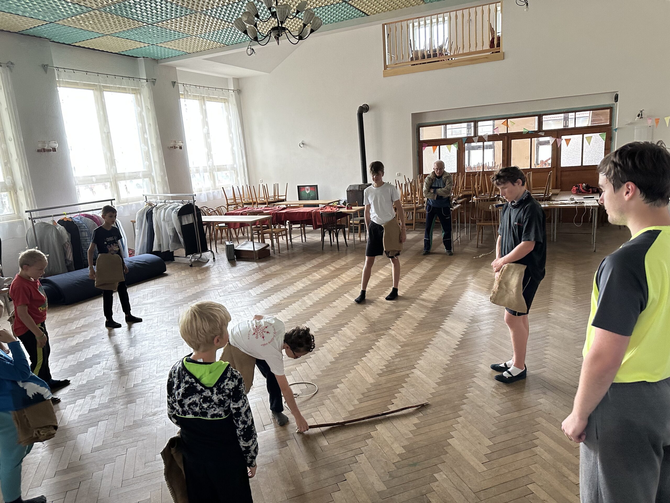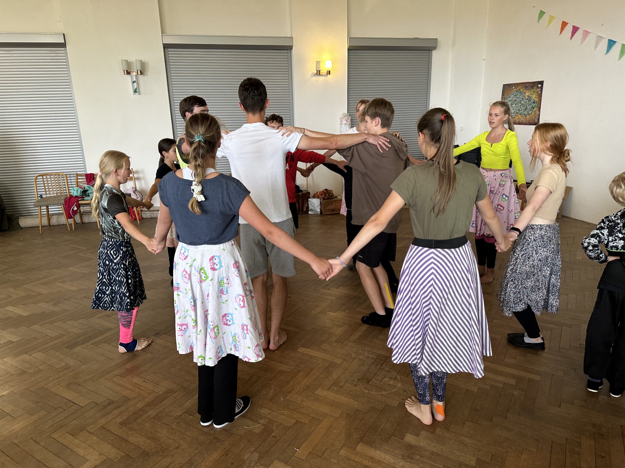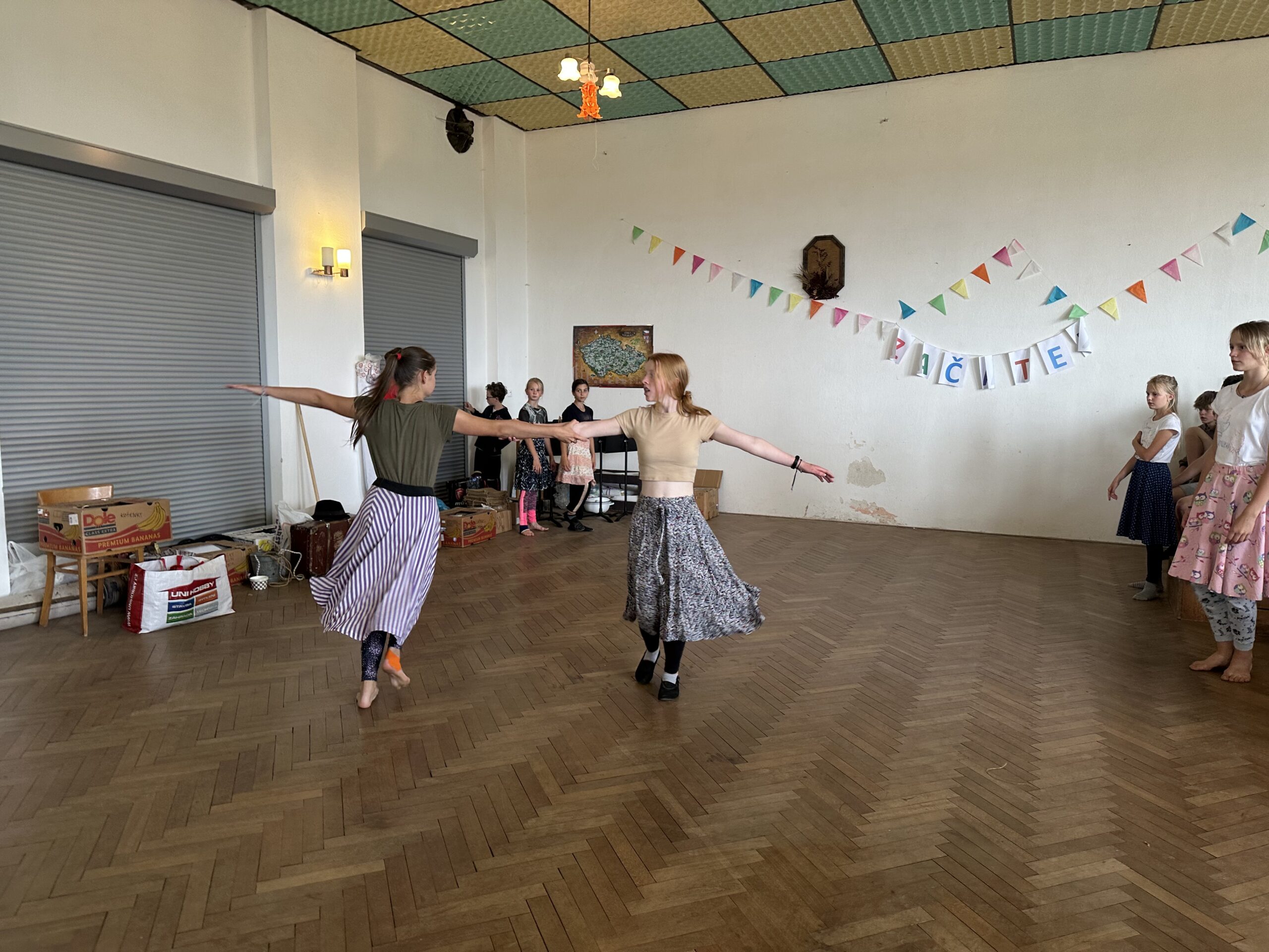 Na dnešní volný den jsme měli na dopoledním programu nácviky, abychom postupně zdokonalovali naše tanečky na závěrečné vystoupení. Postupně jsme se střídali dle připraveného rozvrhu ve stanu nebo v kulturním domě. A jó, už to začíná i trochu vypadat, tak z toho máme radost. Dopoledne nám tímto tempem uteklo raz dva, v mezičase jablíčko ke sváče, pak ještě dva tance a teď už ten nejvíc nejlepší oběd – knedlíčková polévka a kuřízek v trojobalu s brambory.
