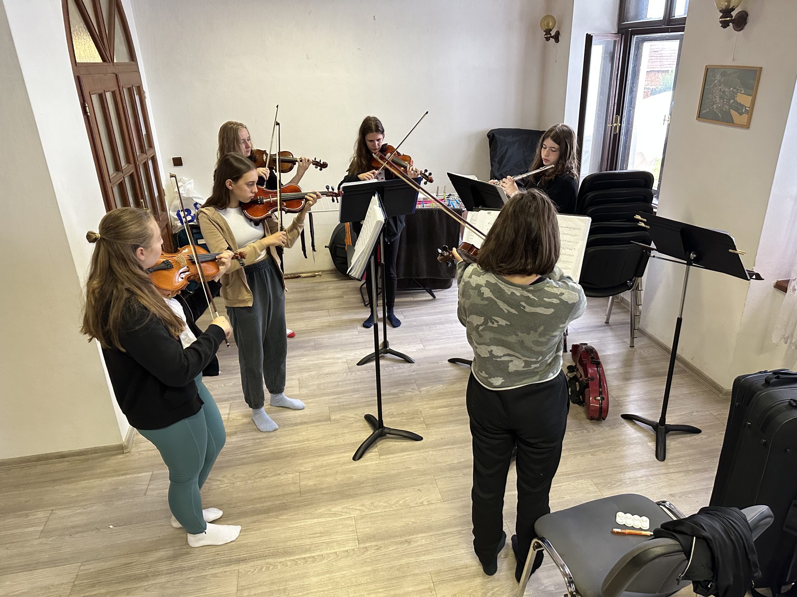 Ještě chvilku před večeří nás čekal jeden nácvik, ale tentokrát jsme nacvičovali všichni společně. Jestli jste si totiž mysleli, že vás ochudíme o písničku „Čí je to louka“, tak ne. Trénujeme ji téměř každé ráno během taneční rozcvičky a dnes přišel tedy na řadu trénink společného závěru a šlo to skvěle! Moc se těšíme, že si brzy zanotujete s námi.