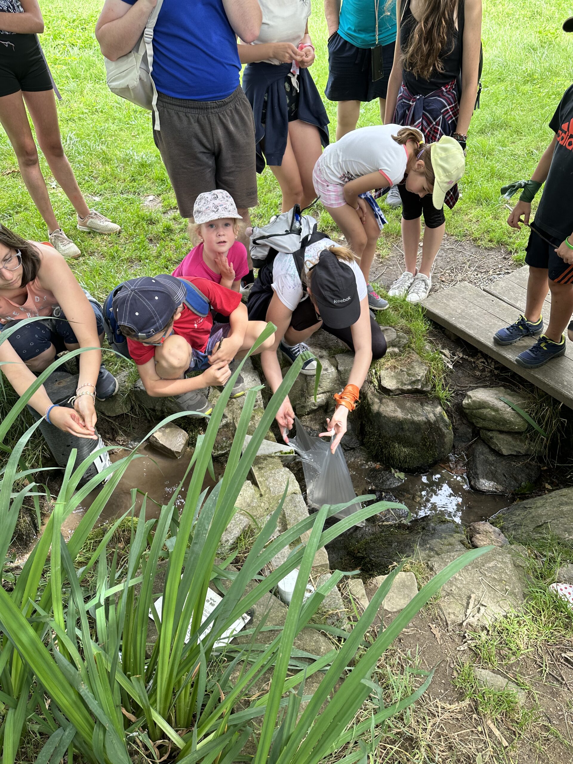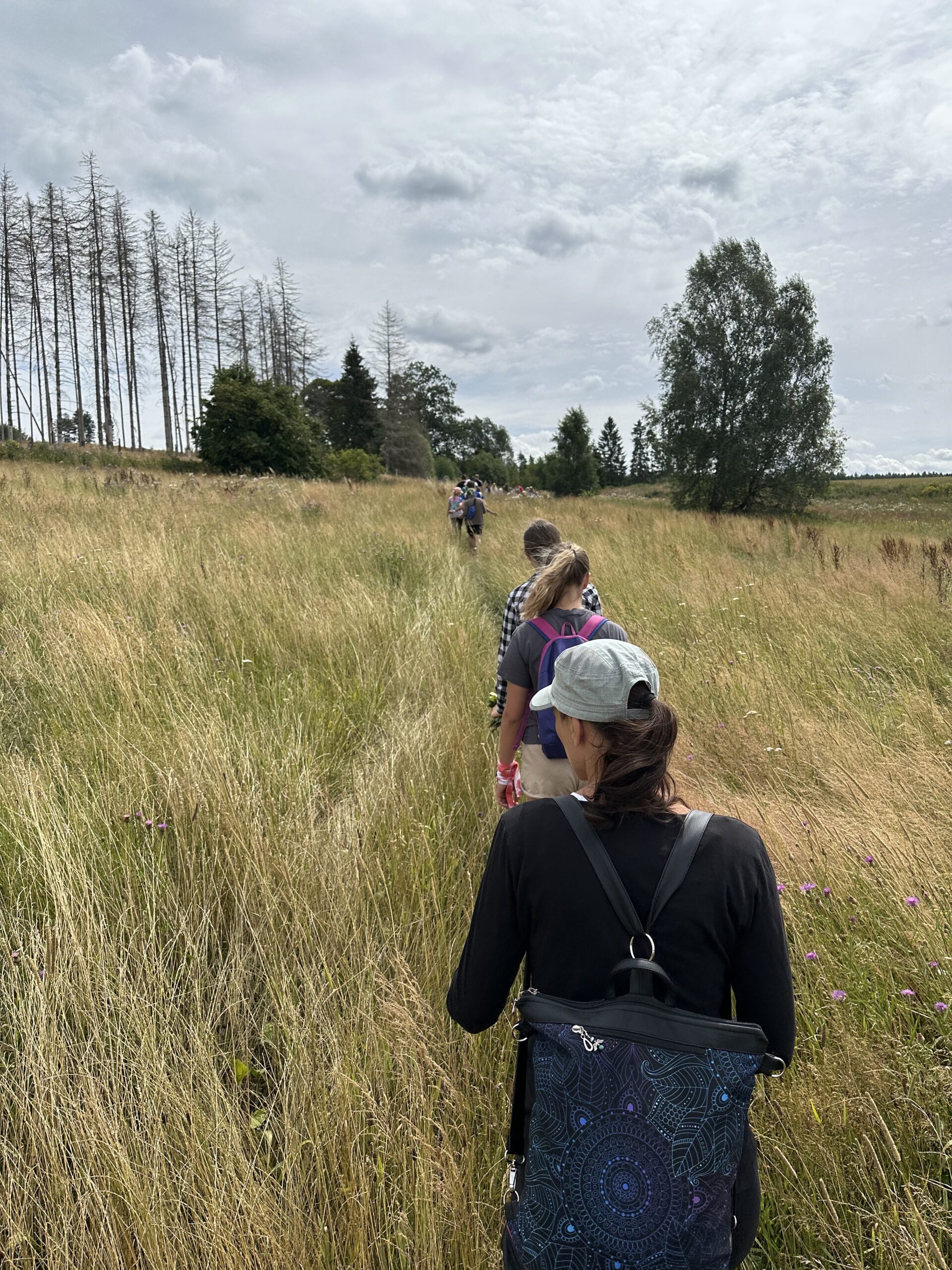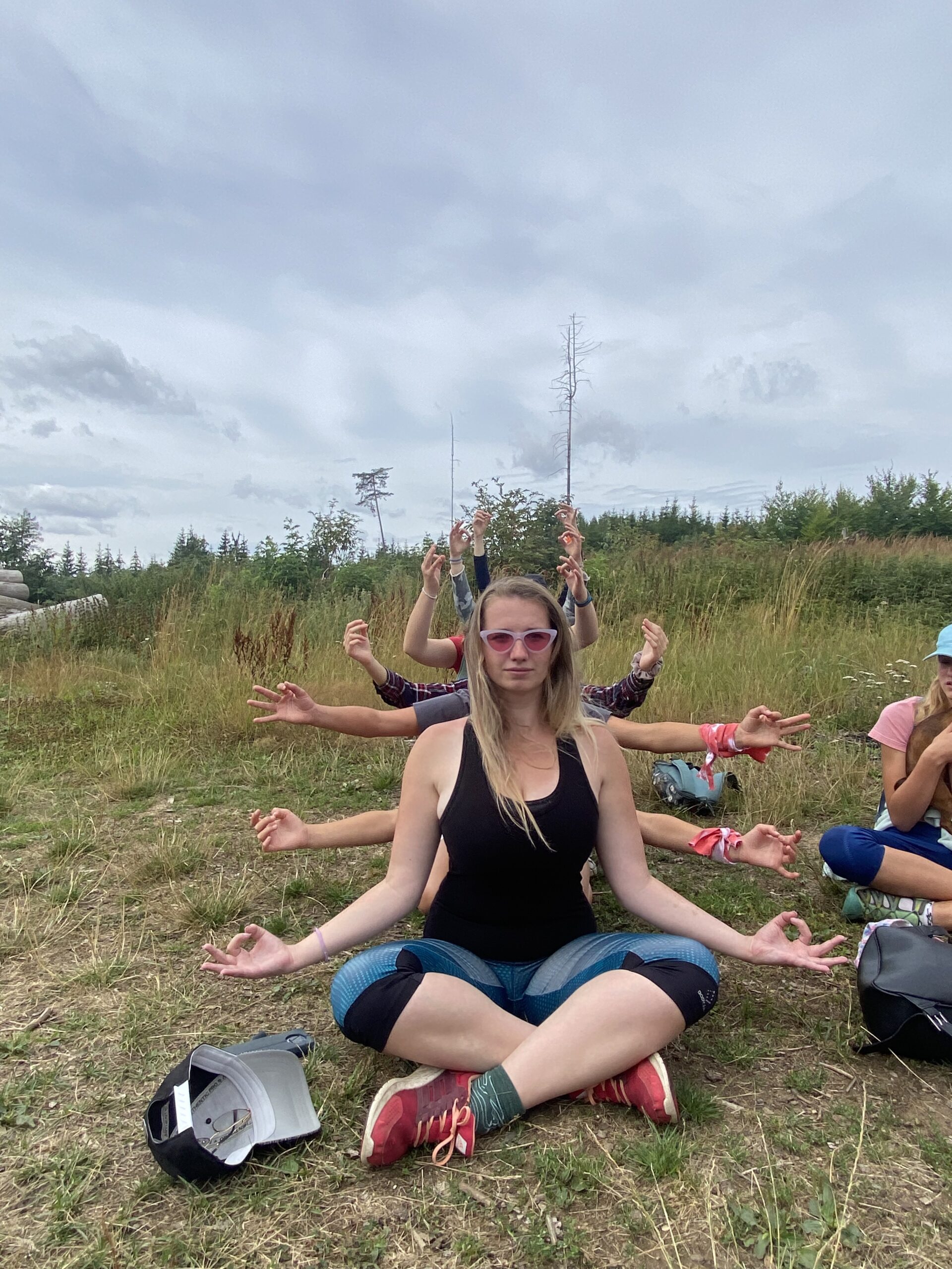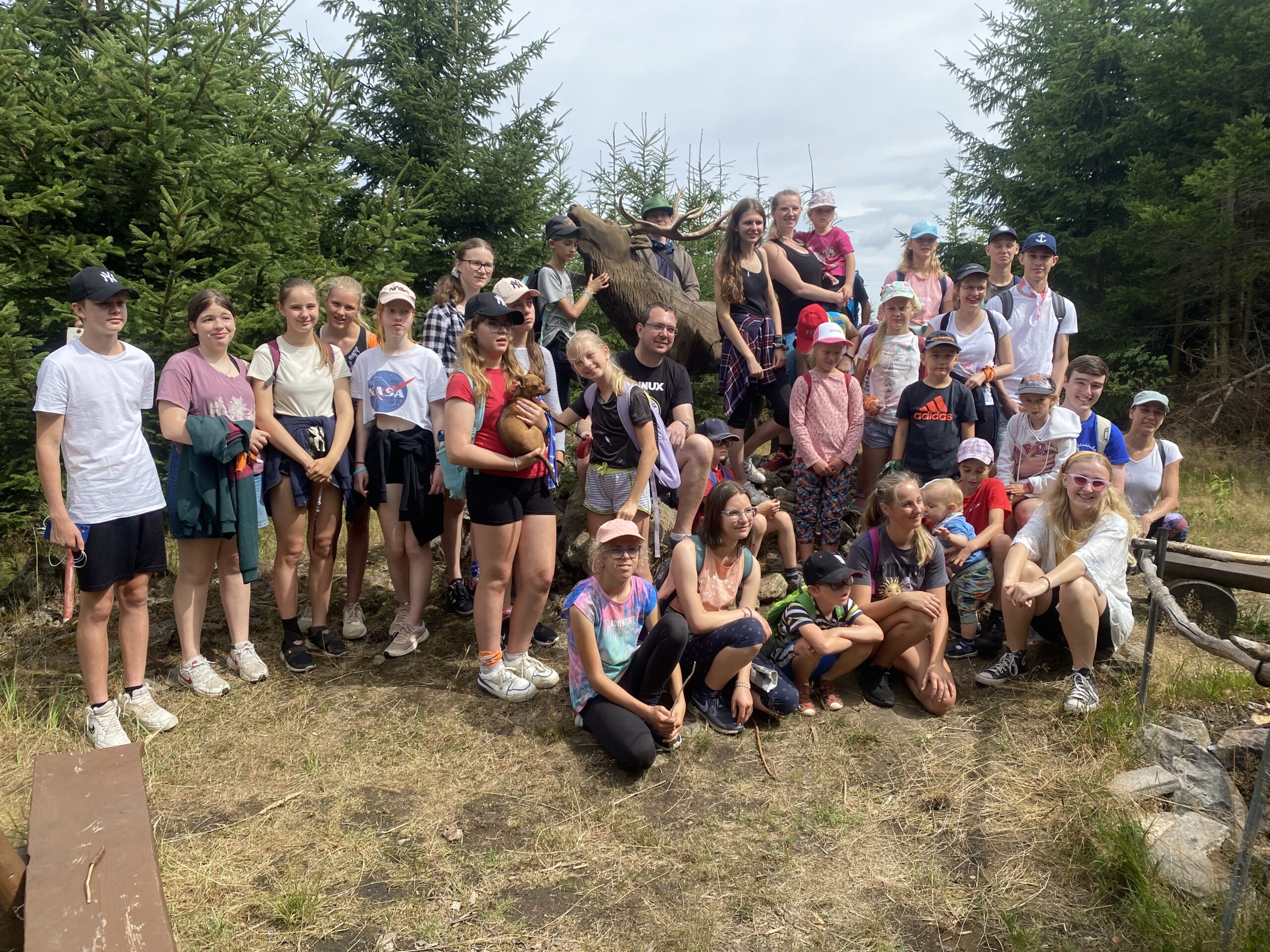 Po snídani jsme se šli převléknout a připravit na výlet. Protože po dlouhé době vysvitlo sluníčko, tak jsme se museli namazat opalovacím krémem, a ještě našplíchat repelentem, abychom byli připraveni na střet s divokou přírodou. Poté jsme vyrazili, ale asi po 100 metrech jsme se zastavili, protože jsme měli domluvenou zastávku v místním obchůdku. Dle slov našeho klíčníka a šafáře Stenlyho mohla paní prodavačka po našem náletu zavřít krám. Když jsme si dostatečně napakovali batůžky dobrůtkama, tak jsme si to konečně začali štrádovat do kopce po krásně vyfrézované silnici. Cesta nám hezky ubíhala. V čele našeho výletního štrúdlu byla Jula a LePra, které nám cestu zpříjemňovaly zpěvem a tancem. Druhý konec jistil Zbýša s Andulkou v nosítku a Verča. Stenly, Worši, Jarmilka a malý Theo v kočárku šli napřed, takže jsme vůbec nevěděli, kde jsou a jen jsme mohli doufat, že LePra skutečně tuší, kam nás vede. Po nějaké chvíli jsme odbočili na louku a prošli kolem rybníku. Cestou jsme měli za úkol nasbírat nějaké ingredience, abychom mohli vytvořit zotavovací lektvar. Potřebovali jsme nasbírat květ žluté barvy, květ kopřivy, list javoru, kořen smetánky lékařské a vodu z pramene.